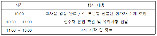 - 공개 된 주제 중 고사 당일 추첨 출제 실시