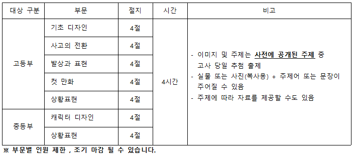 기초디자인, 사고의전환, 발상과표현, 컷만화, 상황표현, 캐릭터디자인(중등), 상황표현(중등) |