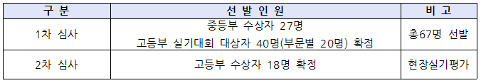 ※ 중등부는 실기대회를 실시하지 않으며, 2019. 9. 17. (화) 최종 결과발표 시 수상자 발표