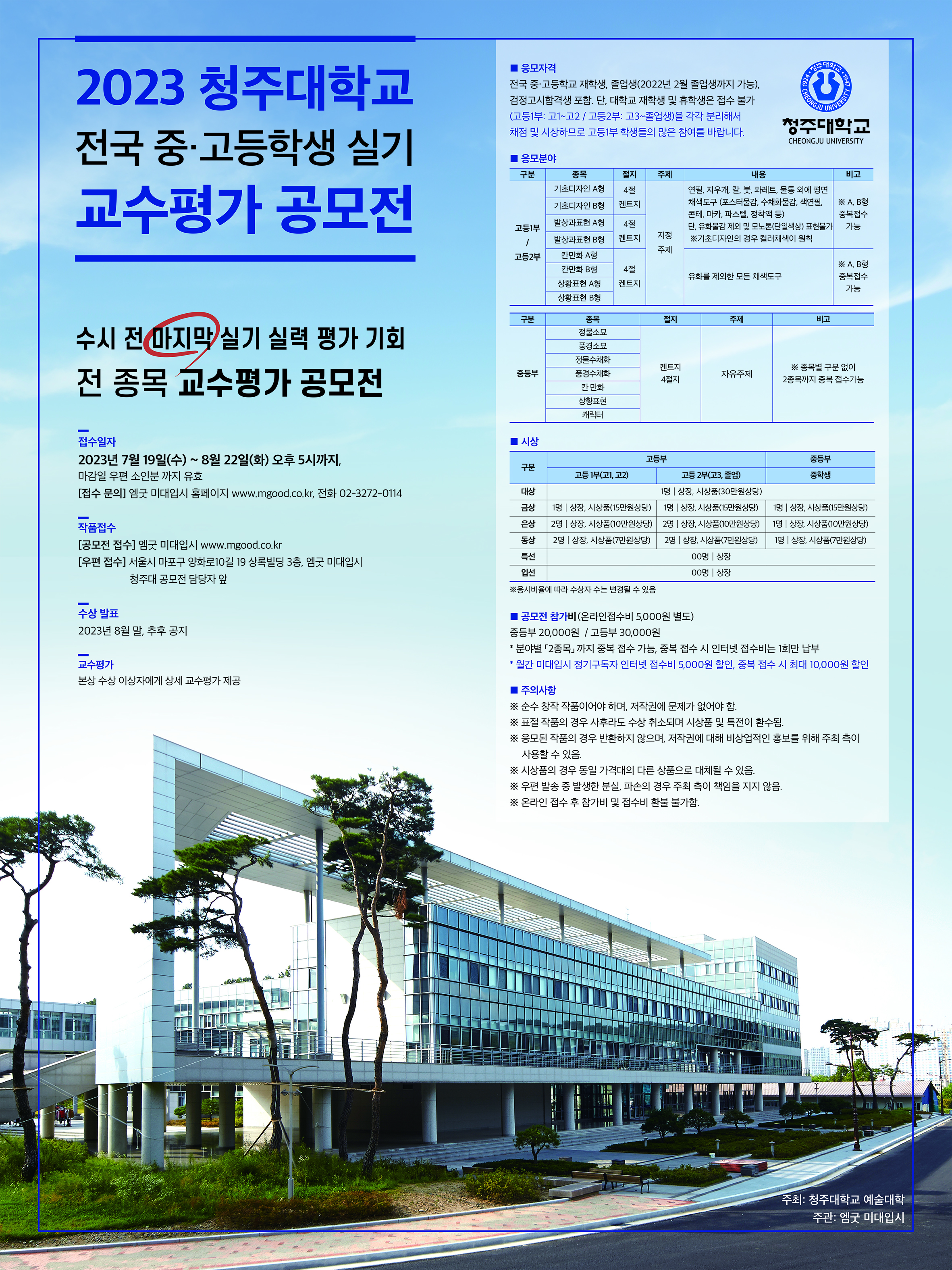2023 청주대학교 전국 중·고등학생 실기 교수평가 공모전