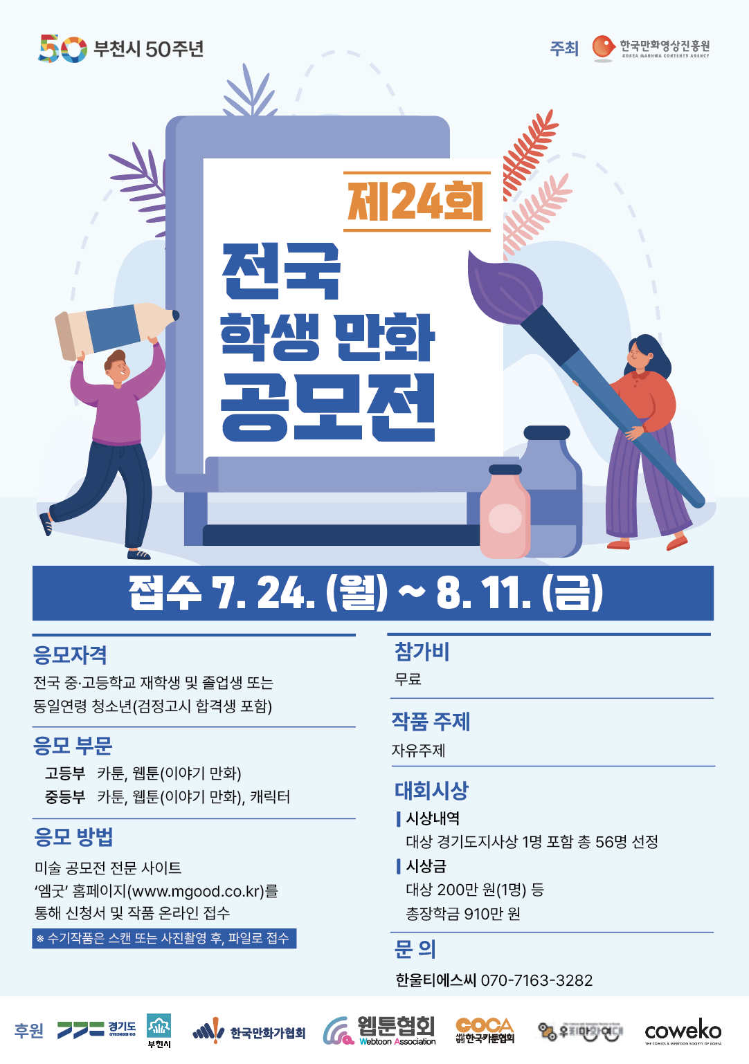 - 공모전 문의 : 한국만화영상진흥원 032-310-3141