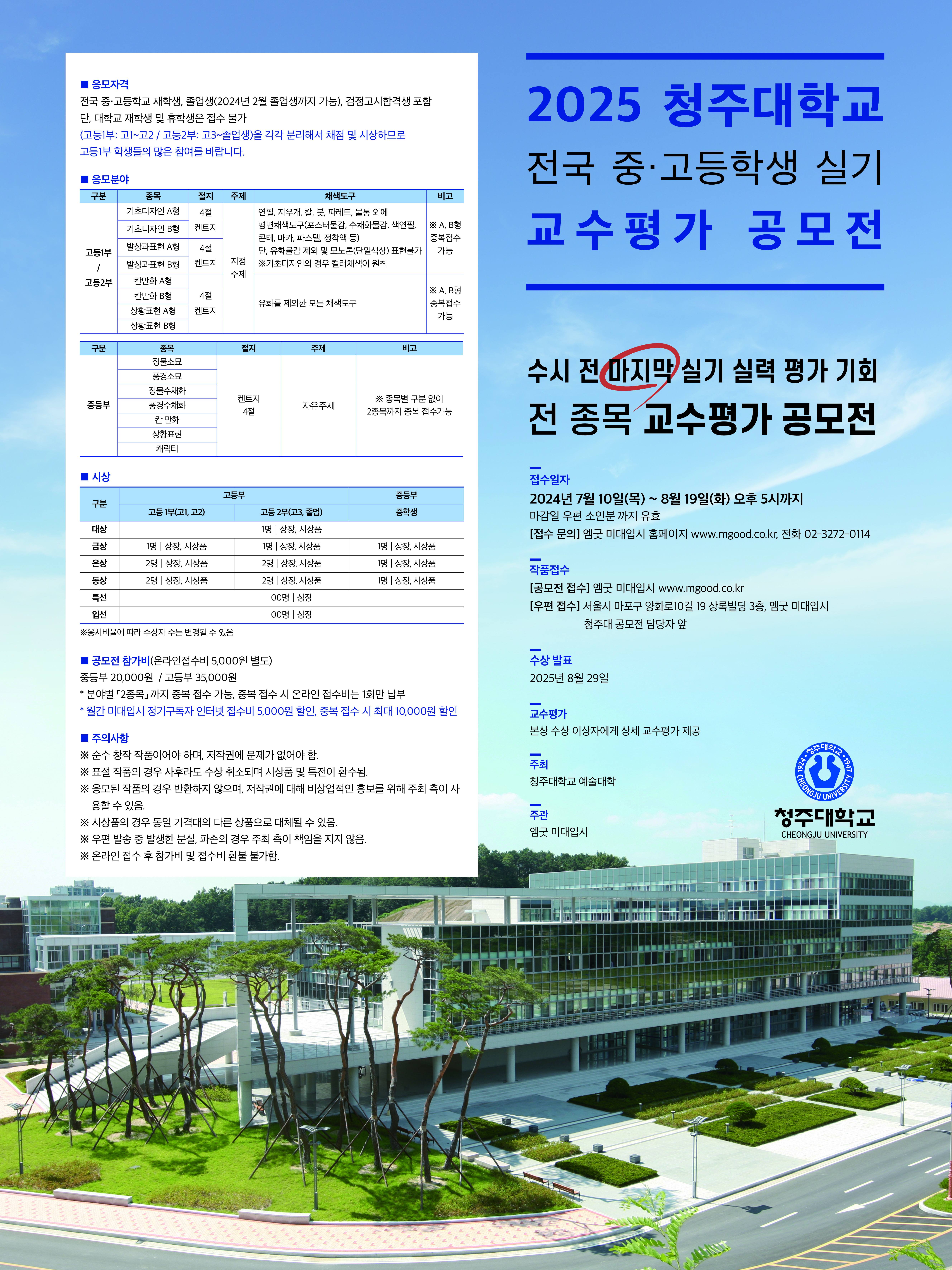 2025 청주대학교 전국 중·고등학생 실기 교수평가 공모전