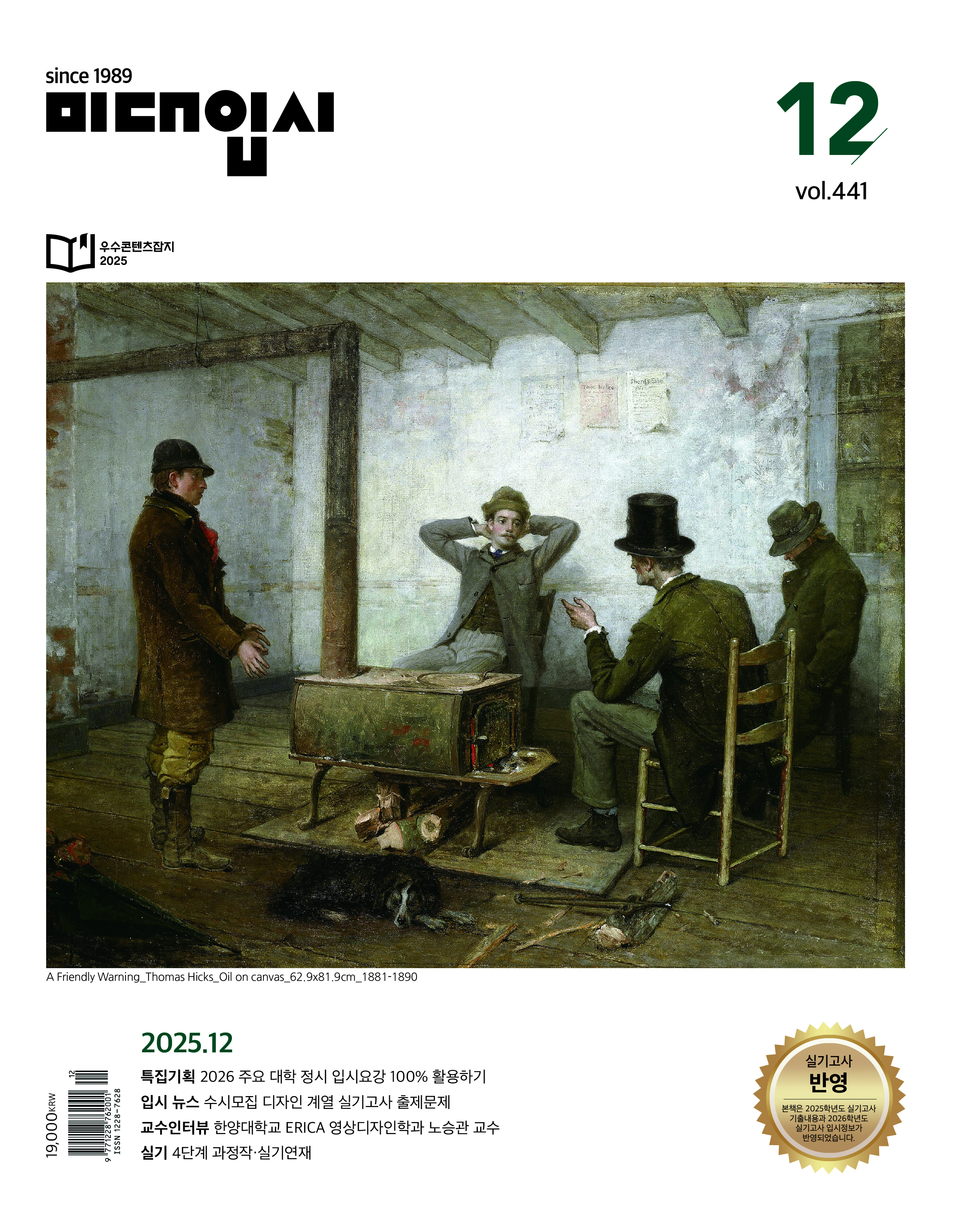 2026년 01월호 정가 19,000 원 할인가 17,100 원 2025년 12월호 정가 19,000 원 할인가 17,100 원 2025년 11월호 정가 19,000 원 할인가 17,100 원 2025년 10월호 정가 19,000 원 할인가 17,100 원 단행본 구매 2026학년도 정시모집 진학백과 정가 20,000원 할인가 18,000 원 2026학년도 수시모집 진학백과 정가 18,000원 할인가 16,200 원 2026학년도 미술·디자인·만화애니 계열 진.. 정가 20,000원 할인가 18,000 원 2025학년도 정시모집 진학백과 정가 20,000원 할인가 18,000 원 2025학년도 수시모집 진학백과 정가 18,000원 할인가 16,200 원 2025학년도 미술·디자인·만화애니 계열 진.. 정가 20,000원 할인가 18,000 원 2024학년도 정시모집 진학백과 정가 20,000원 할인가 18,000 원 2024학년도 미술대학 수시모집 진학백과 정가 18,000원 할인가 16,200 원 2024학년도 진학상담 가이드북 정가 20,000원 할인가 18,000 원 2023학년도 교사용 진학백과 정가 120,000원 할인가 80,000 원 2023학년도 미술대학 정시모집 진학자료집 정가 20,000원 할인가 18,000 원 2023학년도 미술대학 수시모집 진학자료집 정가 15,000원 할인가 13,500 원 2023학년도 미술 디자인대학 입시대비 핵심.. 정가 15,000원 할인가 13,500 원 2022학년도 교사용 진학백과 정가 90,000원 할인가 81,000 원 2022학년도 미술디자인대학 정시모집 진학백.. 정가 20,000원 할인가 18,000 원 2022학년도 미술대학 수시모집 진학자료집 정가 15,000원 할인가 13,500 원 2021학년도 미술디자인대학 정시모집 진학백.. 정가 20,000원 할인가 18,000 원 2021학년도 미술대학 수시모집 진학자료집 정가 15,000원 할인가 13,500 원 2021 교사용 진학백과 정가 90,000원 할인가 81,000 원 2021학년도 미술 디자인대학 입시대비 핵심.. 정가 15,000원 할인가 13,500 원