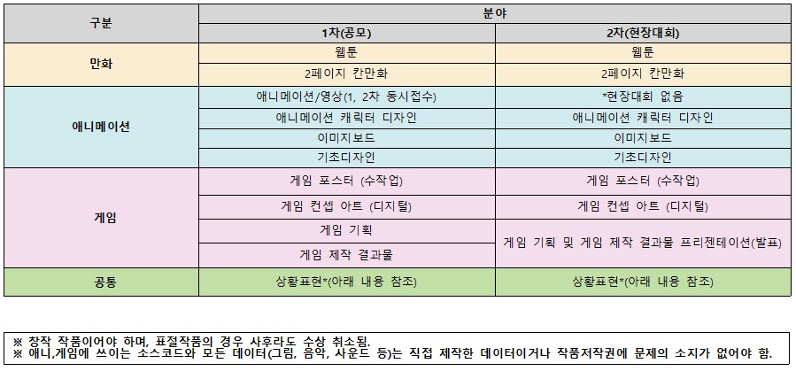 ※ [애니메이션영상 부문]과 [게임 제작 결과물 부문]은 작품 당 제작 인원 : 5인 이하