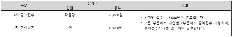 * 2개 부문을 동시 접수하면 자동할인이 적용되지 않습니다.