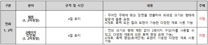 만화(웹툰), 만화(2페이지칸만화), 애니(애니메이션/영상), 애니(애니메이션캐릭터디자인), 애니(이미지보드),
