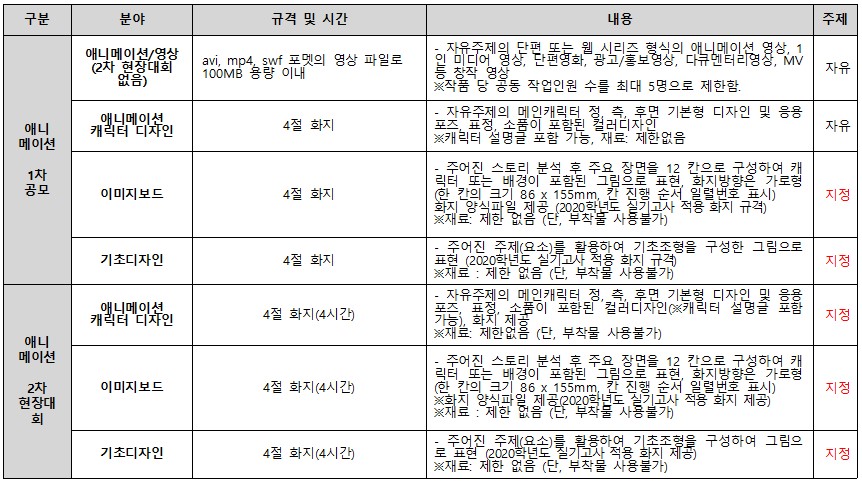 [공모전] 2020 청강문화산업대학교 만화 · 애니메이션· 게임 콘텐츠 실기대전(1차)