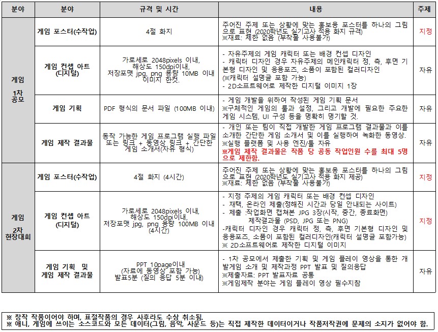 애니(기초디자인), 게임(게임포스터-수작업), 게임(게임컨셉아트-디지털), 게임(게임제작결과물), 공통(상황표현),