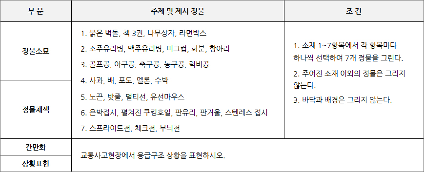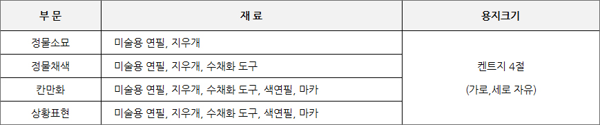 공모부문 정물소묘, 정물채색, 칸만화, 상황표현