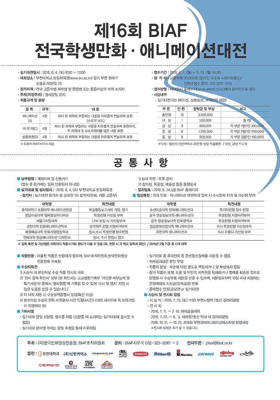 □ 입상특전 : 전국 만화.애니메이션 관련학과 입학 시 수시입학 자격 및 가산점 부여