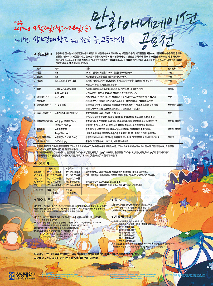 - 접 수 처 : 상명대학교 예술대학 만화․애니메이션학과