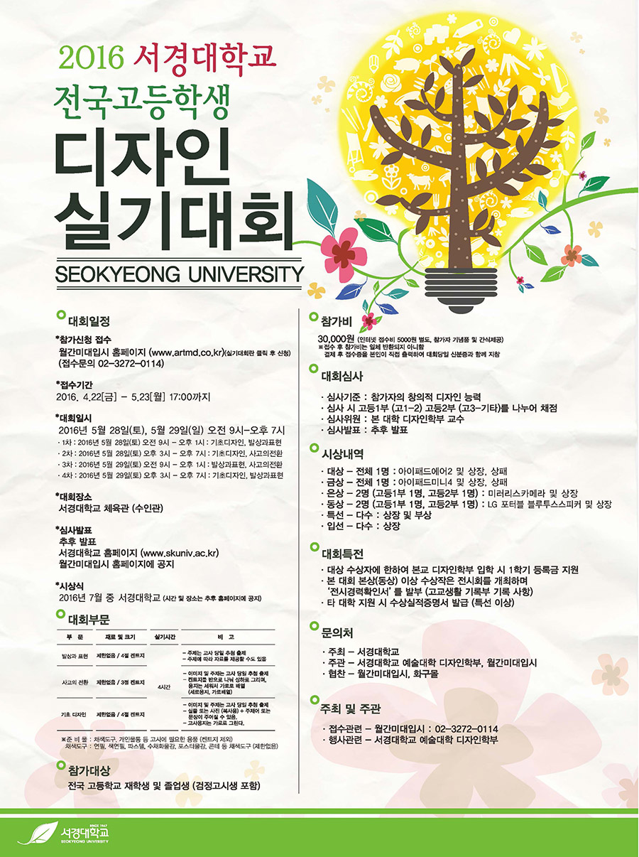 [실기대회] 2016 서경대학교 전국고등학생 디자인 실기대회
