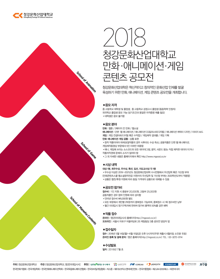 [공모전] 2018 청강문화산업대학교 만화 · 애니메이션· 게임 콘텐츠 공모전
