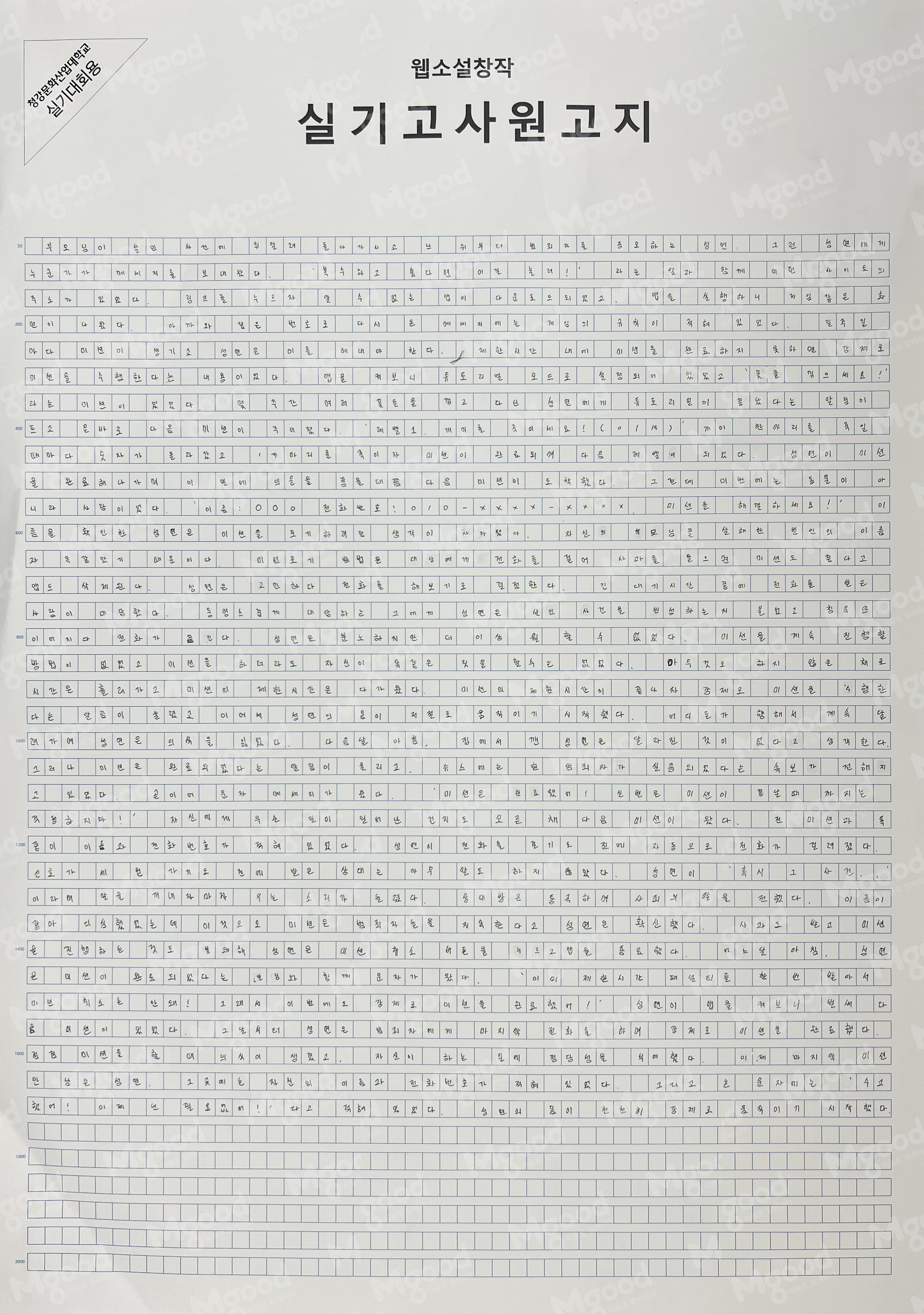 회사소개 이용약관 개인정보취급방침 제휴(홍보/기사/사업) 고객센터 주식회사 엠굿 대표자:남아식 사업자등록번호:583-88-02291 주소:서울시 마포구 양화로 10길 19 상록빌딩 3층 통신판매신고번호:2022-서울마포-3855호 부가통신사업자번호:8482 개인정보보호책임자:남아식 인터넷신문 등록번호 : 서울 아 52089 (등록일: 2019-01-17) 발행ㆍ편집인 : 남윤성 청소년보호책임자 : 남아식 E-mail:master1@mgood.co.kr(대표) 호스팅서비스 사업자:(주)케이티 Copyright© 엠굿(mgood) All Rights Reserved. 정기구독 및 실기대회 02-335-6919 실기대회 & 공모전 02-3272-0114 문자수신 전용/통화불가 010-2264-6919(실기대회) 010-9939-6919(정기구독) ※ 상담 가능시간 : 09:00 ~ 18:00 / 토,일요일 및 공휴일 휴무