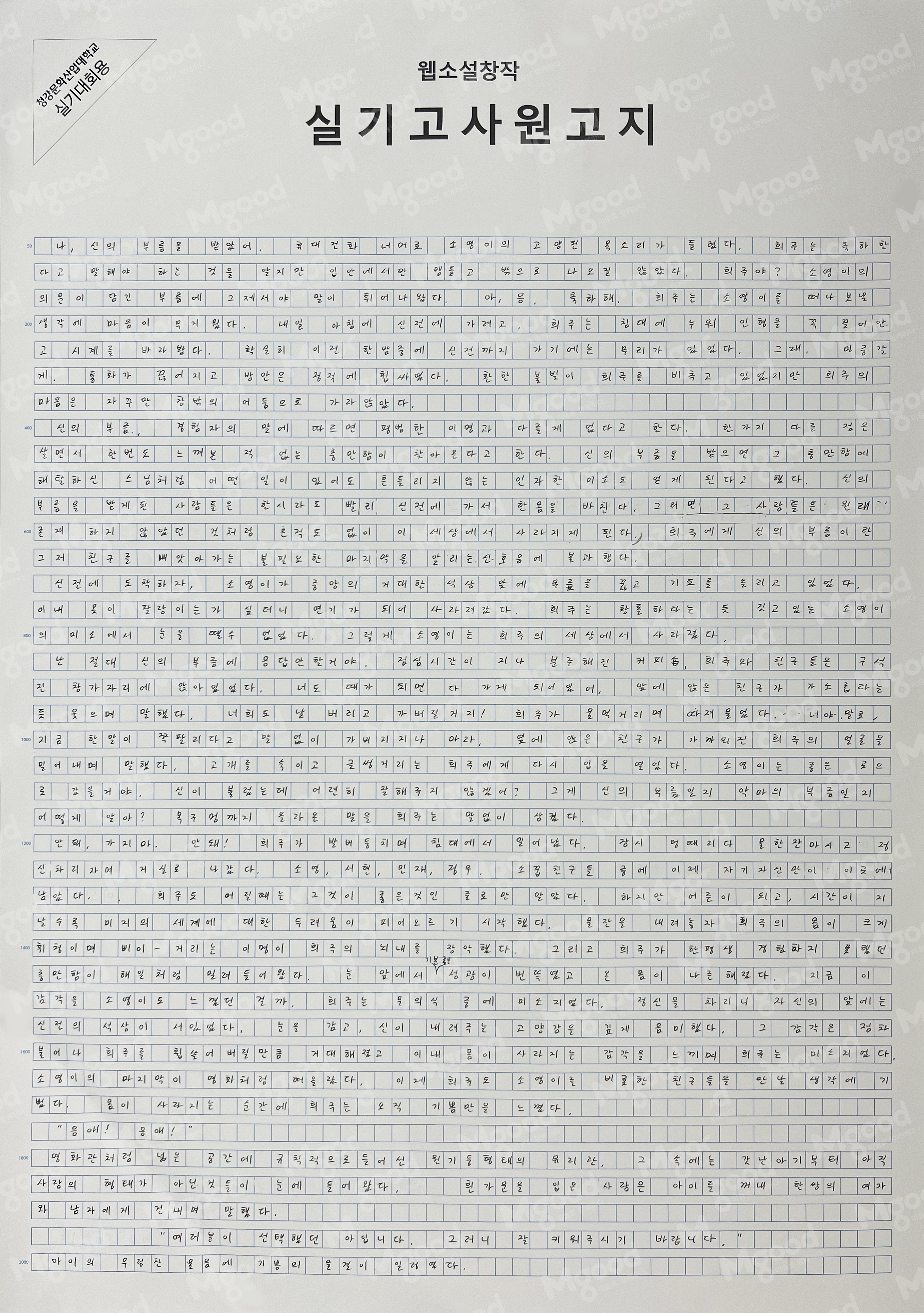 2022 청강문화산업대학교 콘텐츠 실기대전(2차) 실기대회 날짜   2022.08.04      조회수   124907      공유하기 게임/게임 기획 및 게임 제작 결과물 프리젠테이션(발표)-개인1명 게임/게임 컨셉 아트(디지털) 게임/게임 포스터(수작업) 게임/상황표현 만화/2페이지 칸만화 만화/만화적 주제표현 만화/웹소설 만화/웹툰 애니/애니메이션 상황표현 애니/애니메이션 캐릭터 디자인 애니/애니메이션/영상(이미지보드) 애니/이미지보드 융합콘텐츠/상황표현 융합콘텐츠/아이디어스케치와 글쓰기 융합콘텐츠/이미지보드 <최우수상>김혜민 <우수상>정종환 목록