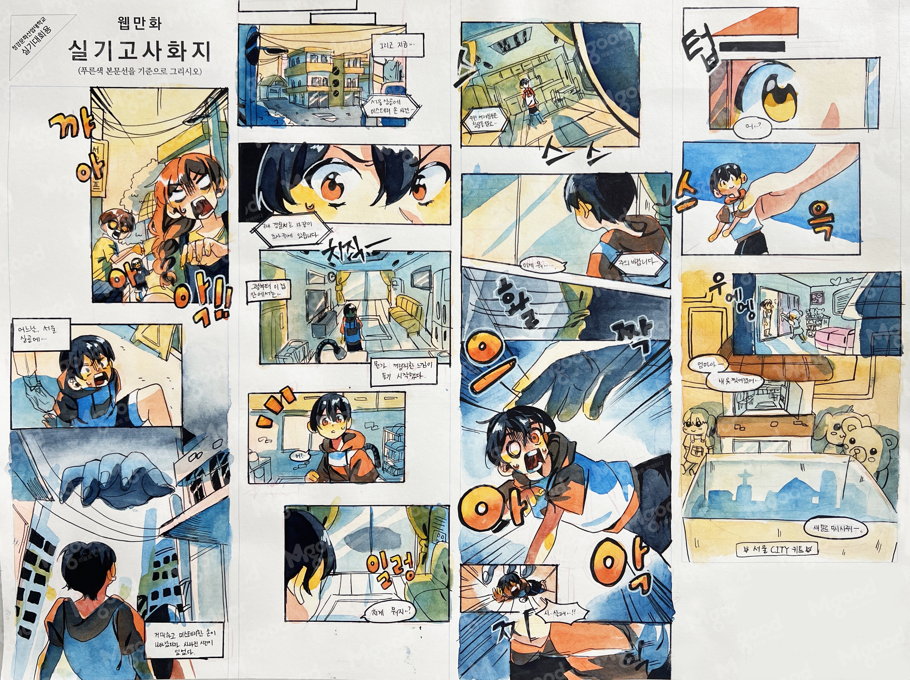 2023 청강문화산업대학교 콘텐츠 실기대전 실기대회 날짜   2023.08.07      조회수   145539      공유하기 게임/게임 컨셉 아트(디지털) 게임/게임 포스터(수작업) 게임/상황표현 만화/2페이지 칸만화 만화/만화적 주제표현 만화/웹소설 만화/웹툰 애니/애니메이션 상황표현 애니/애니메이션 캐릭터 디자인 애니/애니메이션/영상(이미지보드) 애니/이미지보드 융합/상황표현 융합/아이디어스케치와 글쓰기 융합/이미지보드 <대상>홍솔미 <우수상>김단나 <특선>김예진 <특선>안유혜 <특선>명서현 목록