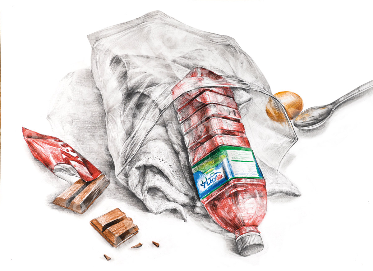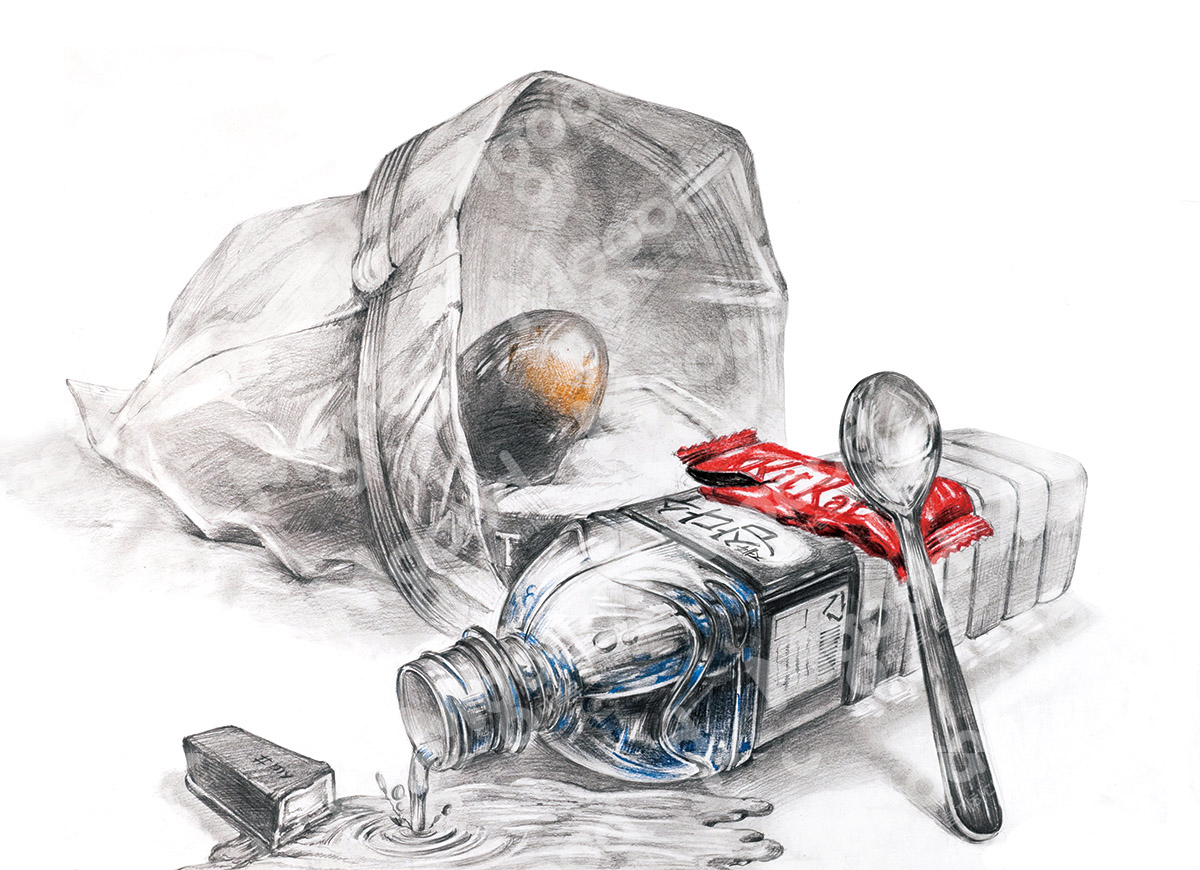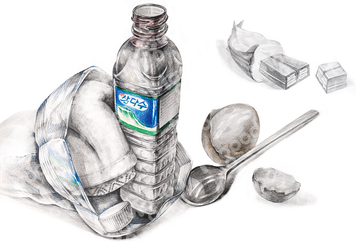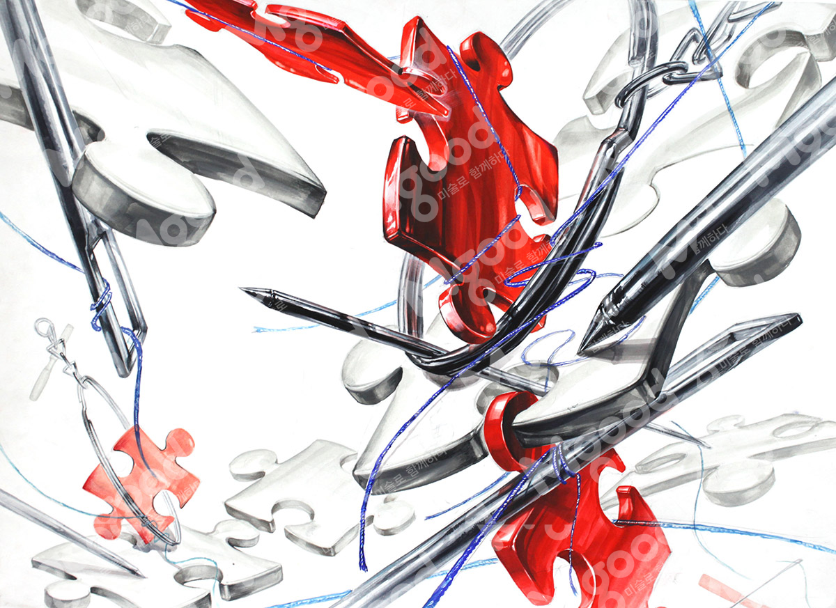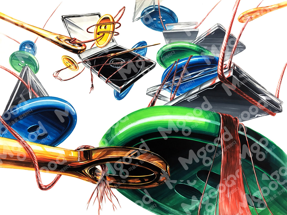 문제:지퍼백 안에 제시물 중 하나를 수건과 같이 보이게 하고 나머지 3개의 사물은 넣지 않은 상태호 화면을 전체적으로 구성하시오.