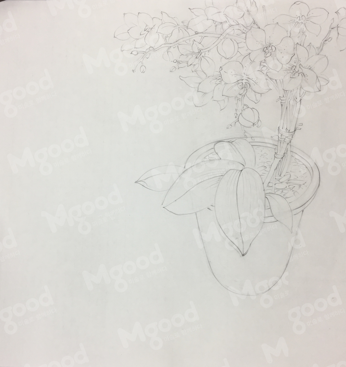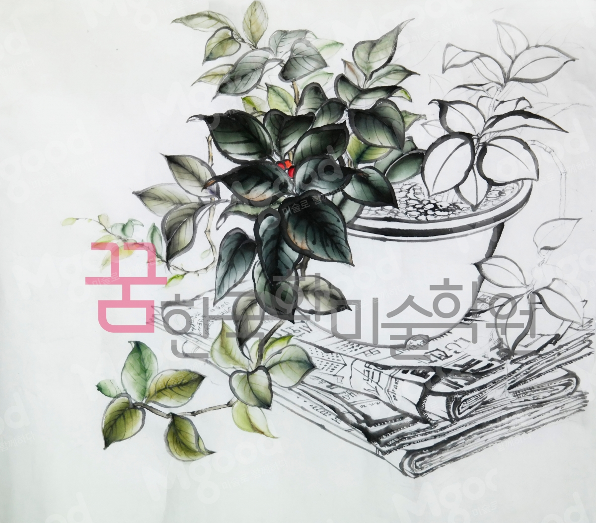 꿈 한국화 미술 정물수묵담채화 - 다양한 표현 (화분)
