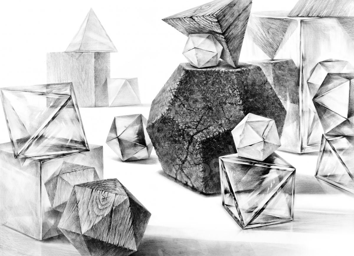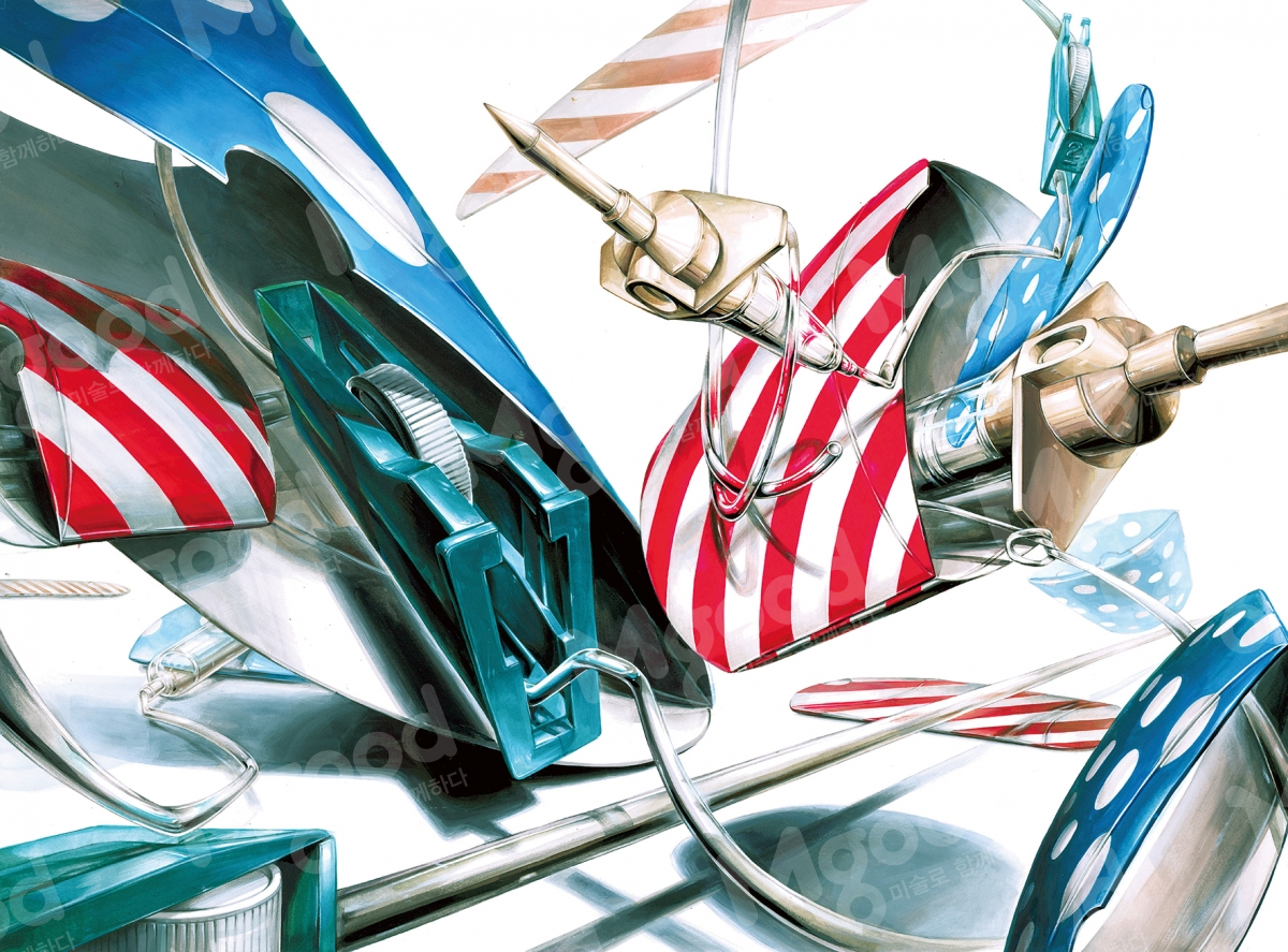 *제공된 사물을 적극 활용하여 투명성을 가진 중첩을 반드시 표현하시오.