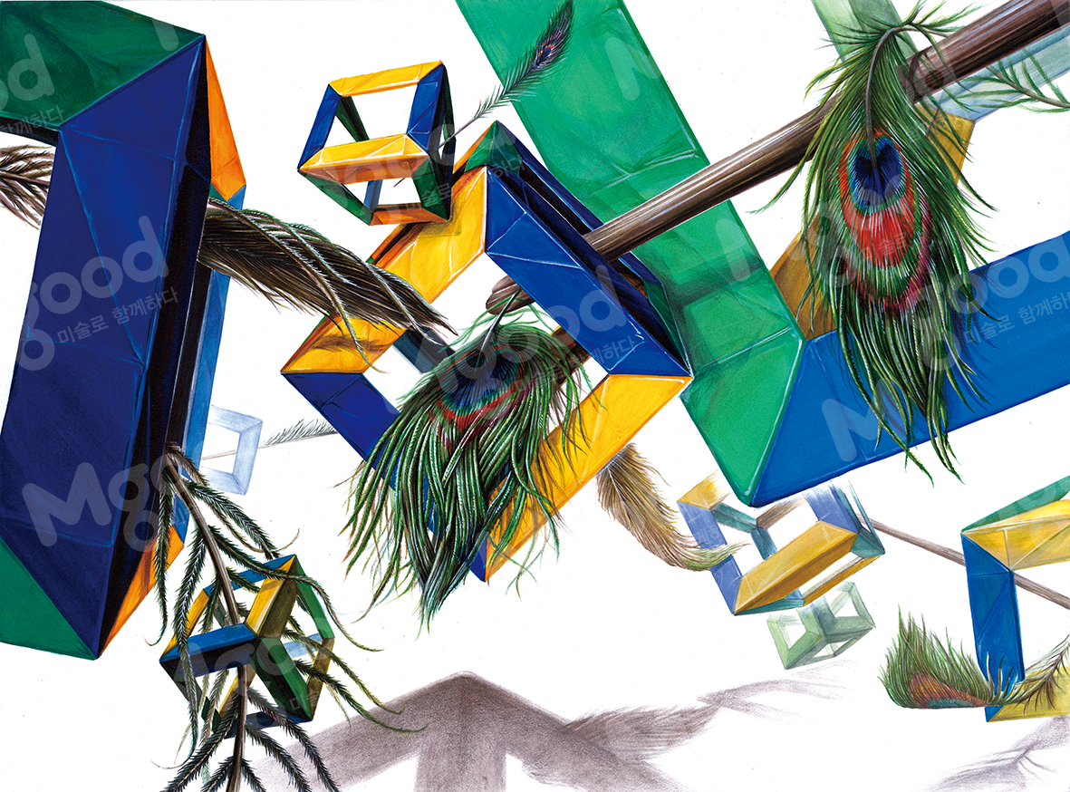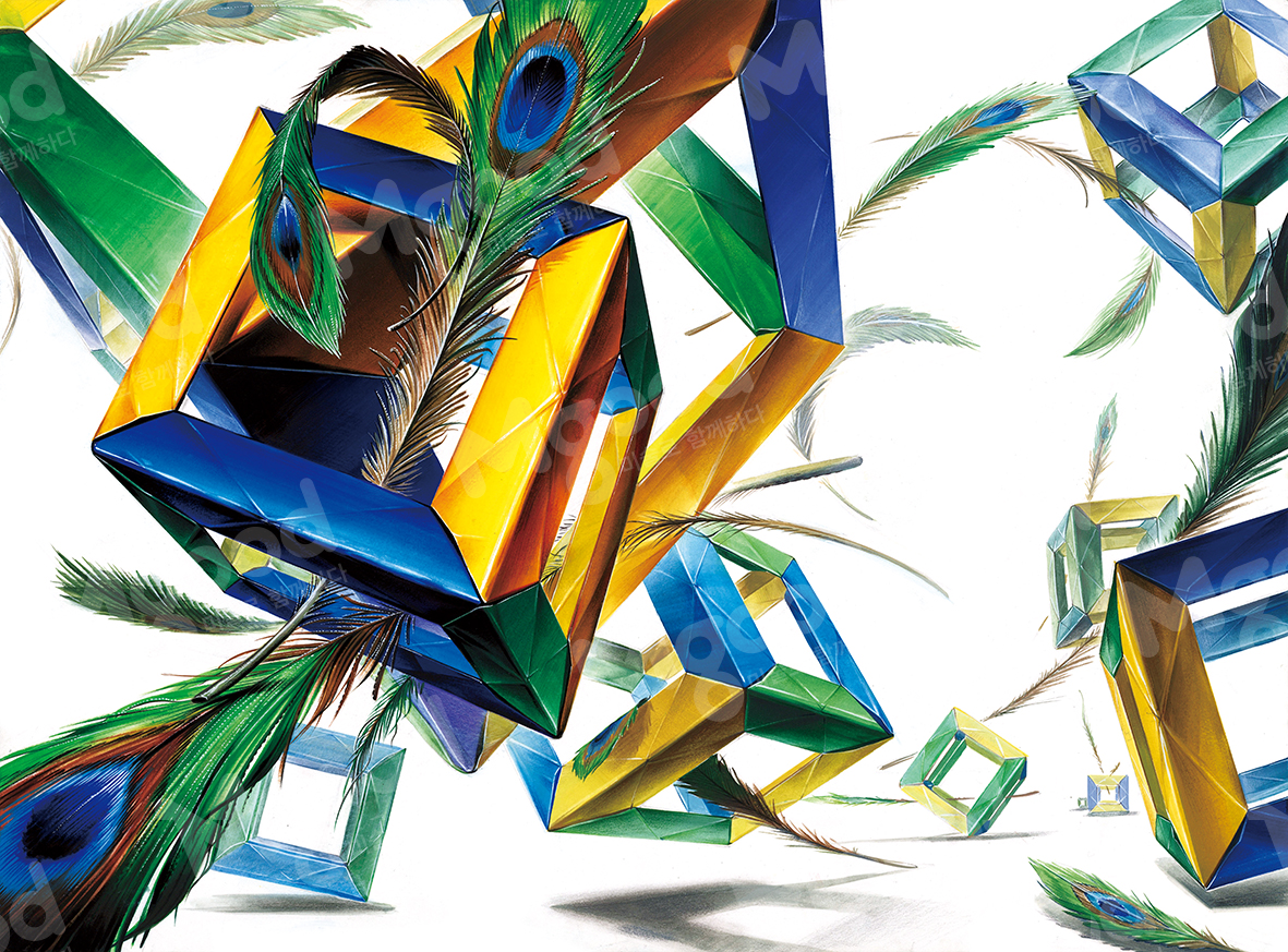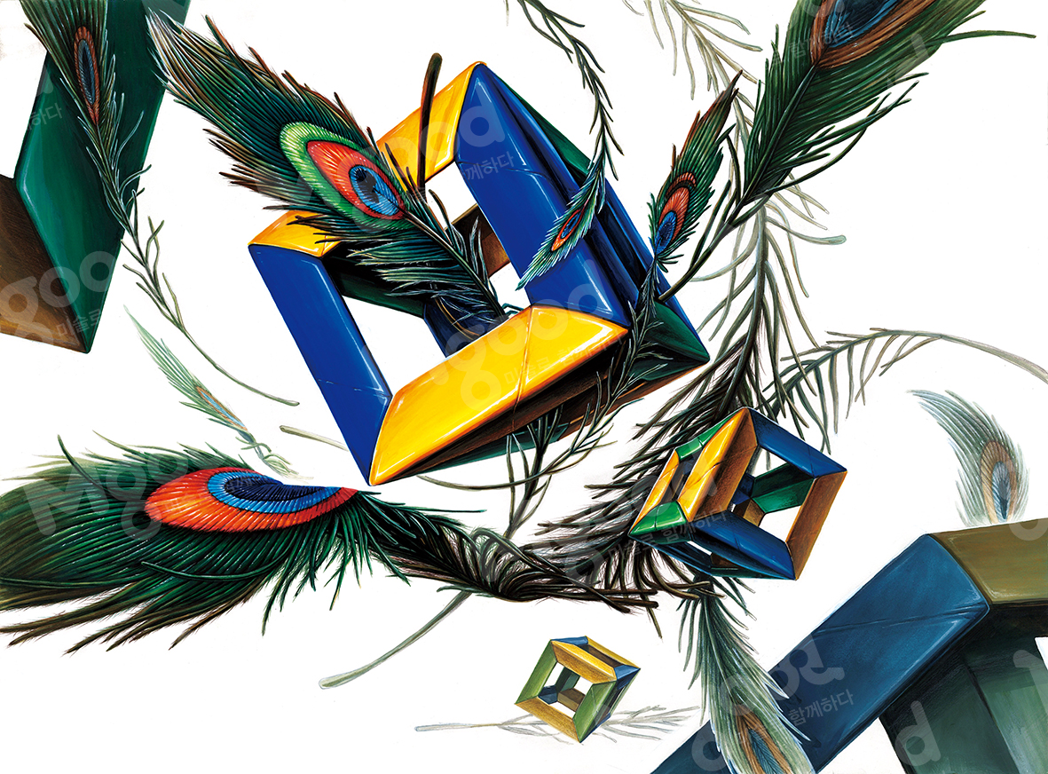 [제공된 사물] 공작 깃털, 큐브