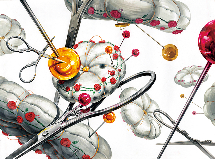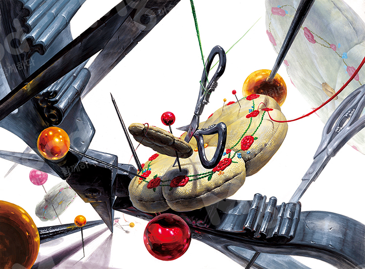 제공된 사물 : 가위, 핀+핀봉 [※제공된 사물의 수량은 자유, 제공된 사물 이외의 형상은 표현 금지.]