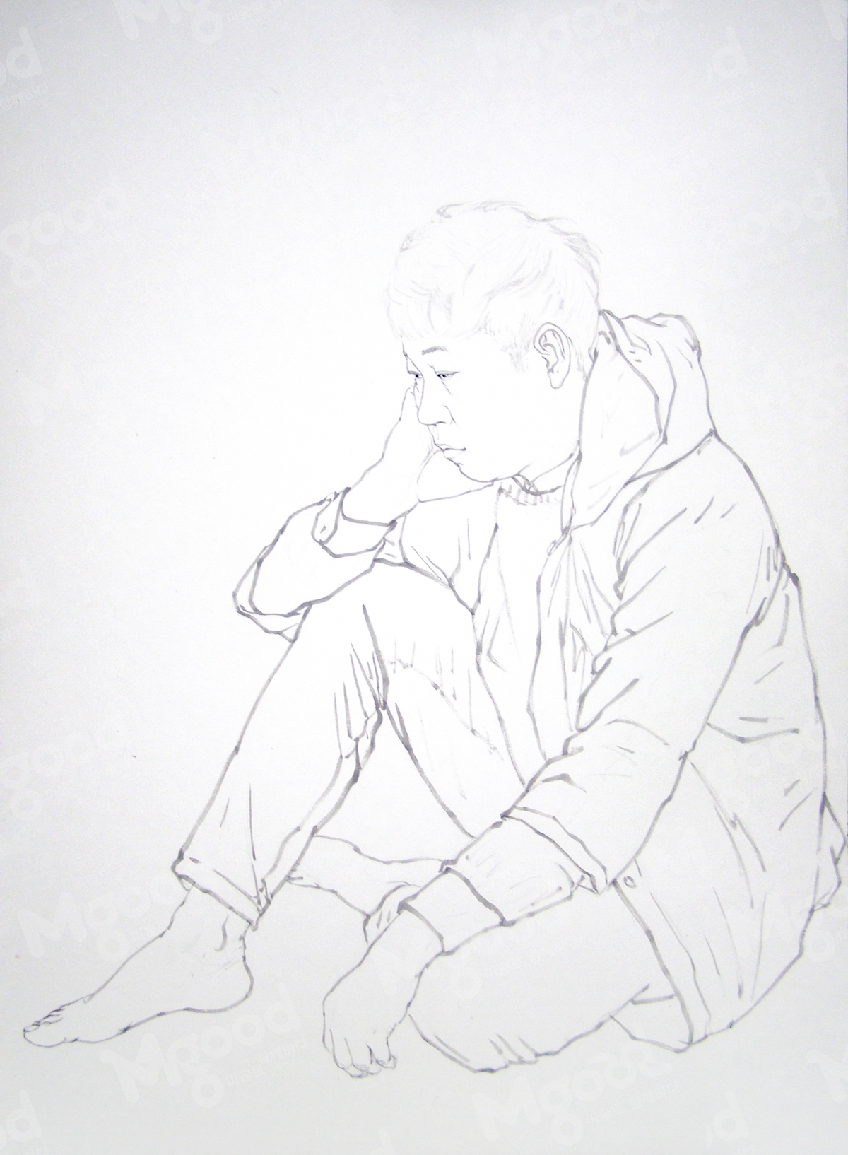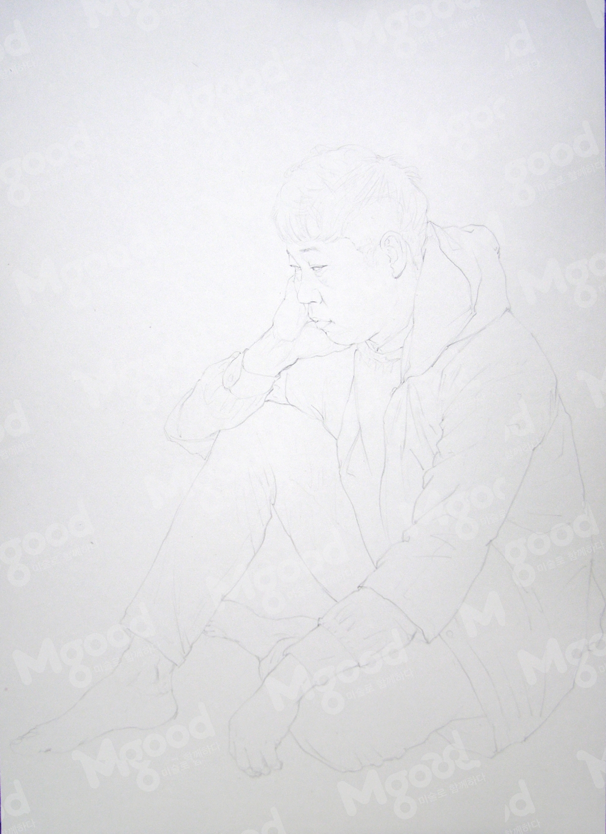 피부선은 담묵으로 부드럽게 긋고 옷은 피부선보다 농담과 굵기의 변화를 주어 양감을 표현한다. 선의 변화에서 입체감을 줄 수 있도록 해보자.