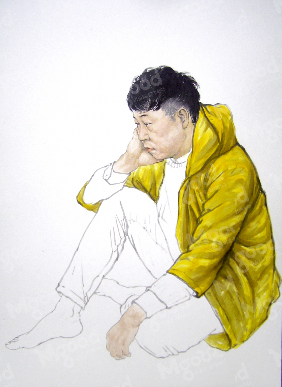 모델의 자세에 따라 화선지 전체화면의 구성이 달라지는 점에 유의 하여 인물화를 완성하도록 한다. 인물의 시선에 맞게 위치를 선정하고, 동세가 자연스러운 완성도 높은 그림을 그려보자.