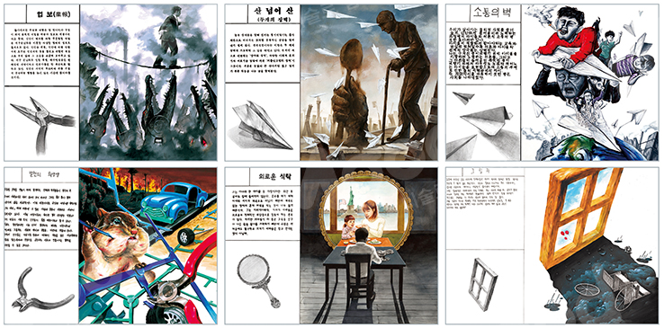 정해진 형식이 없기 때문에 그림의 표현기법이 다양하고 출제자의 의도에 맞춰 자신의 생각을 종합적으로 활용해 시각화하고 있는 그림들이다. 이처럼 자기만의 개성과 탄탄한 기본기를 바탕으로 접근해 전달력을 높이는 것이 핵심이다.