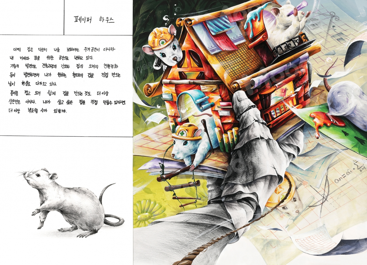 ※조건 및 주의사항 : 1. 선, 면의 색과 재질의 제한 없음 / 2. 색 자유, 배경표현 자유 / 3. 표현 재료의 제한 없음. 단 입체적 첨가 형식의 재료 사용을 금지함.