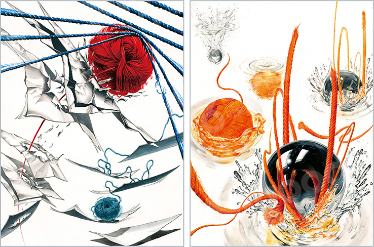 제시된 사물(털실)과 임의로 선택한 사물들의 형태와 특성을 활용하여 FAST 와 SLOW의 관계를 표현하시오.