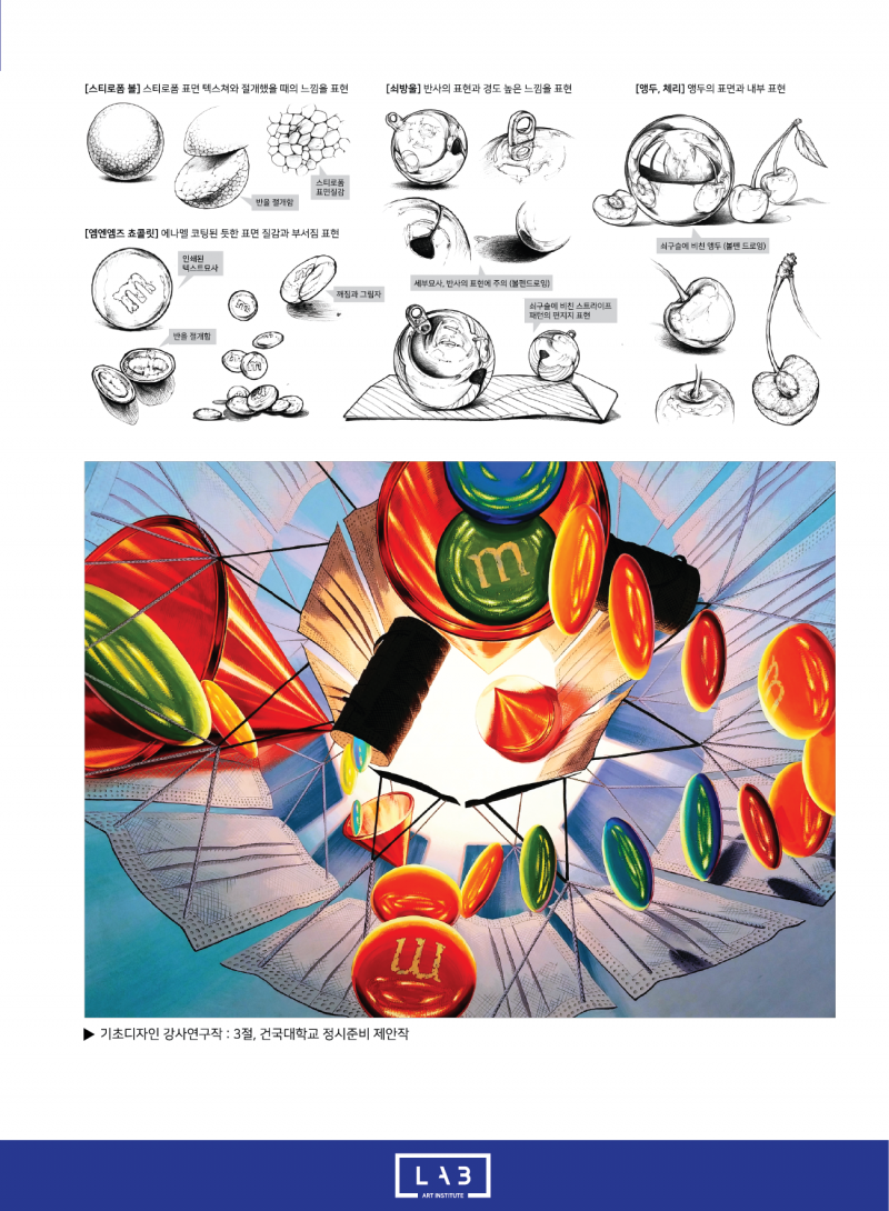 실제 디자이너로 활동했던 유능한 강사진의 디자인 교육으로 단순히 입시그림이 아닌, 대학에 가서도 쓸 수 있는 예술감각과 기초소양을 가르칩니다.