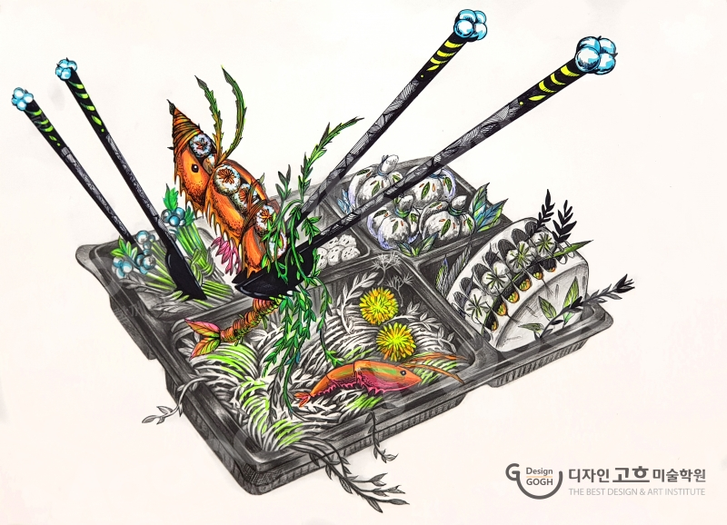 2021 국민대 실기대회 기초조형B 수상제안작 작성자   김영복      날짜   2021.06.12      조회수   2574      공유하기 식물(민들레, 목화, 파리지옥)의 조형적 특징을 활용한 도시락디자인(음식, 젓가락) 제시물의 특징을 활용하는 방법과 명도대비를 통한 완급조절 주의깊게 감상하세요 게시자의 SNS 게시자의 다른글   581건 목록 [실기정보] 2021 국민대 실기대회 기초조형C ... [실기정보]2021 국민대 실기대회 기초조형B ... [실기정보]2021 국민대 실기대회 기초조형B ... [실기정보]2021 국민대 실기대회 기초조형B ... [실기정보]2021 국민대 실기대회 기초조형B ...