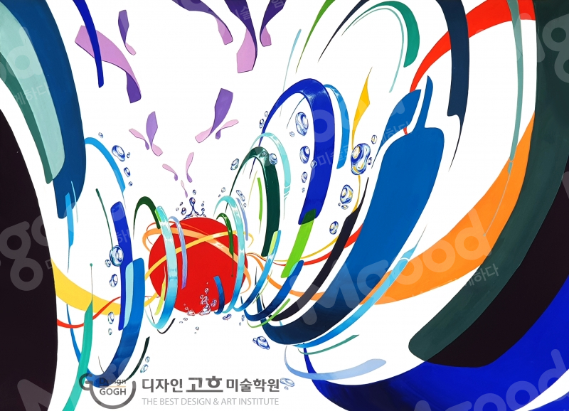 2021 디자인고흐 공모전 - 기초디자인 우수작 작성자   김영복      날짜   2021.08.22      조회수   2544      공유하기 물의 이미지를 점, 선, 면으로 단순화하여 표현하였습니다. 물의 어떤 모습을 선택하고, 이를 조형성에 입각해 단순화 한점에 초점을 두고 감상하세요 - 소용돌이 치며 물이 빠져나가는 현상을 연출한 듯 회전감을 극대화한 운동감있는 작품이다. - 간결한 표현과 절제된 색채를 활용해 통일감을 주었다, - 다만, 이렇게 모노톤의 색채 배색계획을 할 때는 명도대비의 필요성이 매우 중요해진다. - 색채대비대신 명도대비를 활용해야 했으며, 즉 물속으로 길게 배치된 긴 곡선의 물줄기의 명도가 배경의 명도와 대비감을 주었어야 더욱 더 힘이생긴다. - 특히 오른쪽의 파랑색의 외곽 물파장 표현은 조금더 어두운톤으로 표현했더라면 하는 아쉬움이 있다. 게시자의 SNS 게시자의 다른글   581건 목록 [실기정보] 2021 [한세대학교 총장상] 수리디... [실기정보]2021 디자인고흐 공모전 - 기초디... [실기정보]2021 디자인고흐 공모전 - 기초디... [실기정보]2021 디자인고흐 공모전 - 기초디... [실기정보]2021 디자인고흐 공모전 - 기초디...