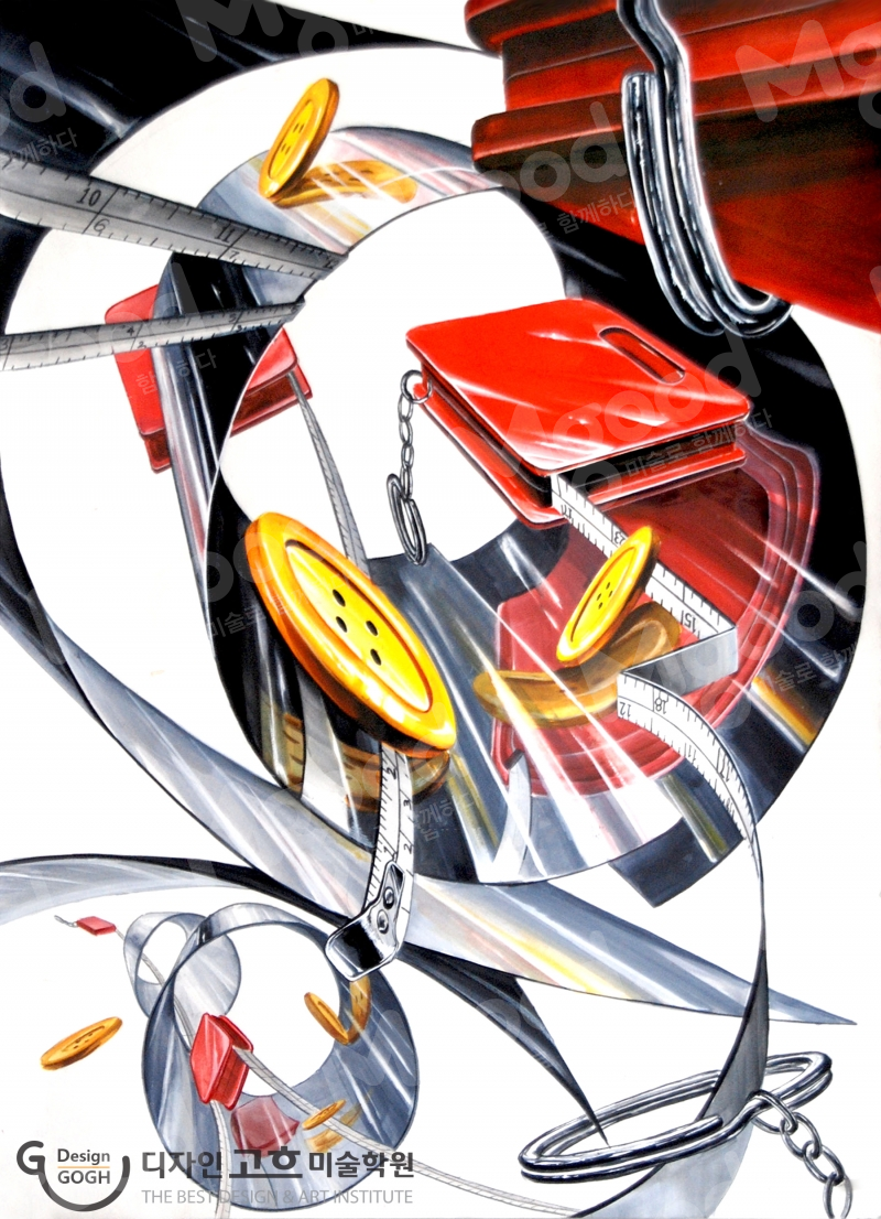 건국대 기초디자인 - 학생 우수작 작성자   김영복      날짜   2021.10.23      조회수   1675      공유하기 줄자, 단추, 반사필름지를 이용하여 [왜곡]을 표현하시오. 제시어를 표현하기위해 실물과 반사된 모습의 차이를 어떻게 대비적으로 표현하였는지에 주목하여 감상하세요. 줄자, 단추, 반사필름지를 이용하여 [왜곡]을 표현하시오. 제시어를 표현하기위해 실물과 반사된 모습의 차이를 어떻게 대비적으로 표현하였는지에 주목하여 감상하세요. 게시자의 SNS 게시자의 다른글   581건 목록 [실기정보] 인체수채화 연구작... [실기정보]건국대 기초디자인 - 학생 우수작... [실기정보]건국대 기초디자인 - 학생 우수작... [실기정보]인체수채화 연구작... [실기정보]기디소재: 붕어빵+포크+끈 ...