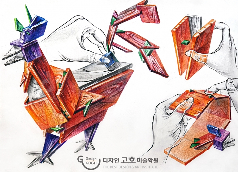 기초조형 학생우수작 작성자   김영복      날짜   2022.05.24      조회수   1699      공유하기 3칠교놀이 퍼즐과 손을 이용하여 조류의 형상을 만드는 과정을 표현하시오. 조류의 특징을 관찰하여 칠교놀이 퍼즐의 형태유사성을 발휘하는 능력과, 조립하는 손의 객관적인 포즈에 주목하여 감상하세요. 게시자의 SNS 게시자의 다른글   581건 목록 [실기정보] 노원창조의아침] 국자 기초디자인 개체... [실기정보]기초조형 학생우수작... [실기정보]월곡창조의아침] 프리큐어 캐릭터 일러... [실기정보]월곡창조의아침] 컷만화 학생작, 청강... [실기정보]월곡창조의아침] 물 표현 소묘...