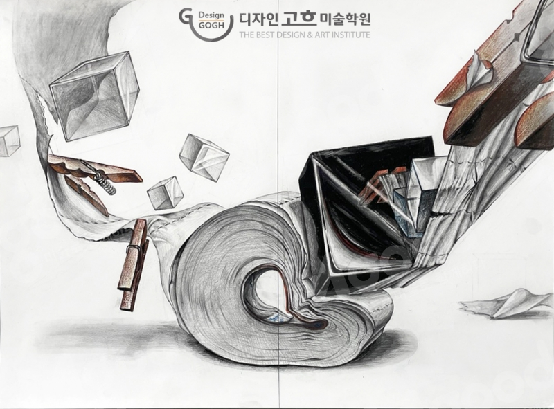 2022국민대기초조형공모전우수작 작성자   김영복      날짜   2022.08.04      조회수   1719      공유하기 두루마리화장지, 나무집게, 정육면체(금속, 투명)을 이용하여 대비를 표현하시오. 각 사물들의 어떤한 기능적 조형적 특징을 사용하였는지, 공통분모를 적절히 사용하여 대비관계를 설명하는지에 대해 주목하여 감상하세요 게시자의 SNS 게시자의 다른글   581건 목록 [실기정보] [노원애니마션] 상황표현 강사 연구작... [실기정보]2022국민대기초조형공모전우수작... [실기정보]2022국민대기초조형공모전우수작... [실기정보]2022국민대기초조형공모전우수작... [실기정보]2022국민대기초조형공모전우수작...