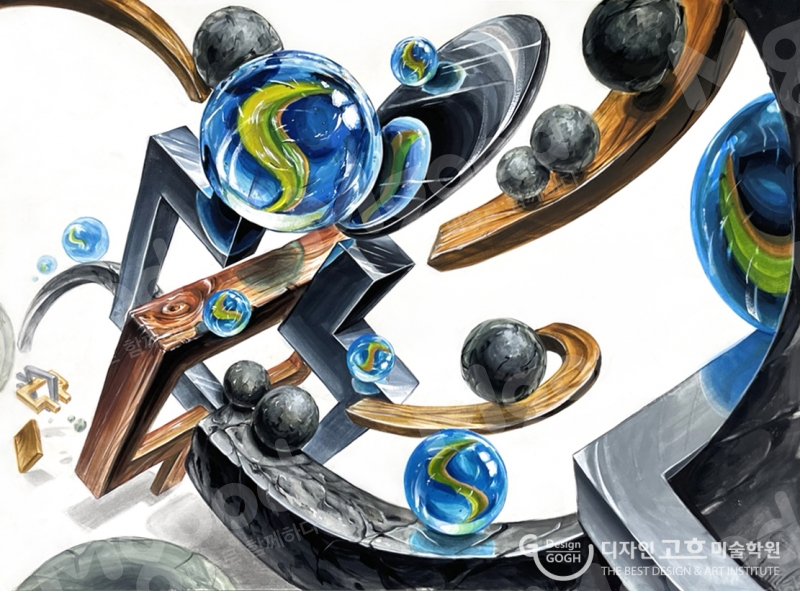 2022건국대기초디자인공모전우수작 작성자   김영복      날짜   2022.08.07      조회수   1255      공유하기 평면도형을 입체화하여 유리구슬과 함께 화면을 구성하고 표현하시오. 유리구슬의 기능적 특징을 나타내기 위한 입체도형들의 배치와 구조적인 결합력 및 질감 설정의 개연성에 주목하여 감상하세요 게시자의 SNS 게시자의 다른글   581건 목록 [실기정보] 2022건국대기초디자인공모전우수작... [실기정보]2022건국대기초디자인공모전우수작... [실기정보]2022건국대기초디자인공모전우수작... [실기정보]2022건국대기초디자인공모전우수작... [실기정보]2022건국대기초디자인공모전우수작...