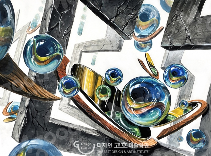2022건국대기초디자인공모전우수작 작성자   김영복      날짜   2022.08.07      조회수   1083      공유하기 평면도형을 입체화하여 유리구슬과 함께 화면을 구성하고 표현하시오. 유리구슬의 기능적 특징을 나타내기 위한 입체도형들의 배치와 구조적인 결합력 및 질감 설정의 개연성에 주목하여 감상하세요 게시자의 SNS 게시자의 다른글   581건 목록 [실기정보] 2022건국대기초디자인공모전우수작... [실기정보]2022건국대기초디자인공모전우수작... [실기정보]2022건국대기초디자인공모전우수작... [실기정보]2022건국대기초디자인공모전우수작... [실기정보]2022건국대기초디자인공모전우수작...