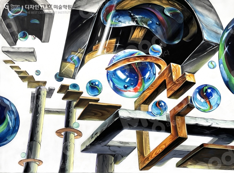 2022건국대기초디자인공모전우수작 작성자   김영복      날짜   2022.08.07      조회수   1040      공유하기 평면도형을 입체화하여 유리구슬과 함께 화면을 구성하고 표현하시오. 유리구슬의 기능적 특징을 나타내기 위한 입체도형들의 배치와 구조적인 결합력 및 질감 설정의 개연성에 주목하여 감상하세요 게시자의 SNS 게시자의 다른글   581건 목록 [실기정보] 2022건국대기초디자인공모전우수작... [실기정보]2022건국대기초디자인공모전우수작... [실기정보]2022건국대기초디자인공모전우수작... [실기정보]2022건국대기초디자인공모전우수작... [실기정보]2022건국대기초디자인공모전우수작...