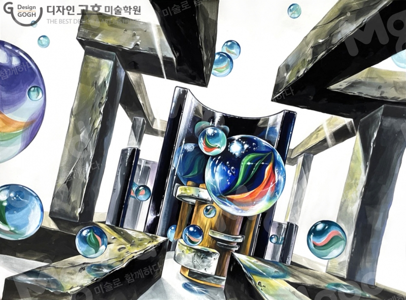 2022건국대기초디자인공모전우수작 작성자   김영복      날짜   2022.08.07      조회수   1745      공유하기 평면도형을 입체화하여 유리구슬과 함께 화면을 구성하고 표현하시오. 유리구슬의 기능적 특징을 나타내기 위한 입체도형들의 배치와 구조적인 결합력 및 질감 설정의 개연성에 주목하여 감상하세요 게시자의 SNS 게시자의 다른글   581건 목록 [실기정보] 2022건국대기초디자인공모전우수작... [실기정보]2022건국대기초디자인공모전우수작... [실기정보]2022건국대기초디자인공모전우수작... [실기정보]2022건국대기초디자인공모전우수작... [실기정보]2022건국대기초디자인공모전우수작...