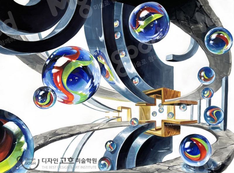 2022건국대기초디자인공모전우수작 작성자   김영복      날짜   2022.08.07      조회수   1890      공유하기 평면도형을 입체화하여 유리구슬과 함께 화면을 구성하고 표현하시오. 유리구슬의 기능적 특징을 나타내기 위한 입체도형들의 배치와 구조적인 결합력 및 질감 설정의 개연성에 주목하여 감상하세요 게시자의 SNS 게시자의 다른글   581건 목록 [실기정보] [노원애니마션] 상황표현 강사 연구작... [실기정보]2022건국대기초디자인공모전우수작... [실기정보]2022건국대기초디자인공모전우수작... [실기정보]2022건국대기초디자인공모전우수작... [실기정보]2022건국대기초디자인공모전우수작...