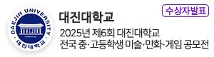 NOTICE 2025 제9회 군포수리 디자인 미술 공모전 수상자 발표(중·고등부) 2025 제9회 군포수리 디자인 미술 공모전 수상자 발표(유·초등부) 2025년 제25회 전국 톰보연필 소묘공모전 수상자 발표 대회접수 전, 중요한 체크사항! 실기대회 환불정책