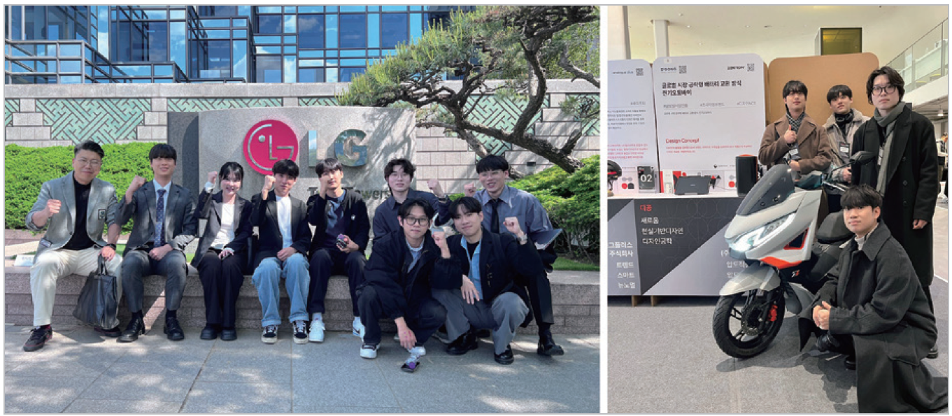 스마트프로덕트디자인과는 기존 산업디자인과에서 AI시대와 스마트 시대의 흐름에 맞춰 학과명을 개편하고, 기술 융합 기반의 실무 중심 교육으로 발전해 왔습니다. AI,IoT, 센서 등 첨단 기술을 디자인에 접목해 사용자 중심의 제품과 서비스를 기획하고 구현할 수 있는 디자이너 양성을 목표로 합니다. 우리 학과의 교육과정은 1학년, 2학년, 전공심화 과정으로 구성돼 있습니다. 1학년은 디자인 툴 활용과 디자인 사고를 중심으로 기초 역량을 다지는 단계입니다. 2학년부터는 스튜디오 기반의 프로젝트 수업을 중심으로 실무 능력을 집중적으로 강화합니다. 이 과정은 유니버설 디자인, 친환경 등 사회 전반의 다양한 이슈를 주제로 문제를 도출합니다. 이를 사용자 경험(UX) 기반의 관점으로 접근해 설계와 기획까지 수행합니다. 프로젝트 결과물은 개인 포트폴리오로 구성돼 졸업 후 진로나 진학에 활용됩니다. 전공심화 과정에서는 학사 학위 취득이 가능하고, 소수정예 운영을 통해 심화한 디자인 기획과 개발 역량을 키웁니다. 또한 논문 작성과 디자인 리서치 수행, 국내외 학술대회 및 디자인 학회 참여를 통해 실무와 학문을 아우르는 전문성을 쌓습니다. 학생들은 매년 Red Dot Design Award, K-Design Award 같은 국제 디자인 공모전과, 대한민국디자인전람회, D2B 디자인 페어 등 국내 주요 공모전에서 꾸준히 수상 실적을 이어갑니다. 이는 실무 중심 교육과 기술 융합 역량, 창의적 문제 해결 접근법이 만들어낸 성과입니다.